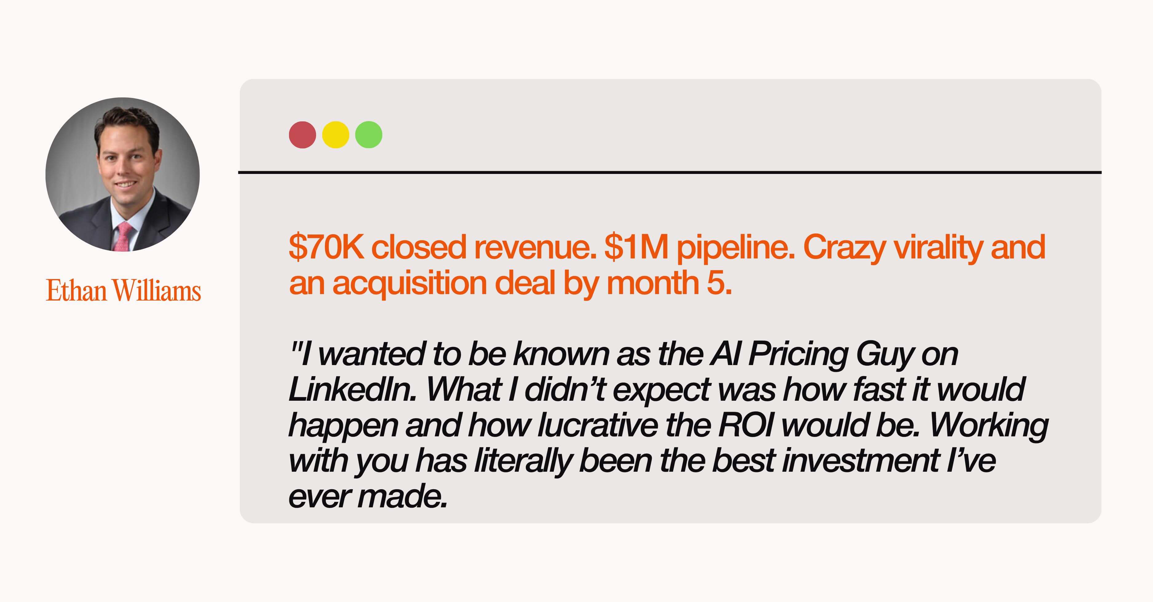 Just like Ethan who went from invisible to $70K closed, $1M in pipeline and an acquisition deal. Five months.
